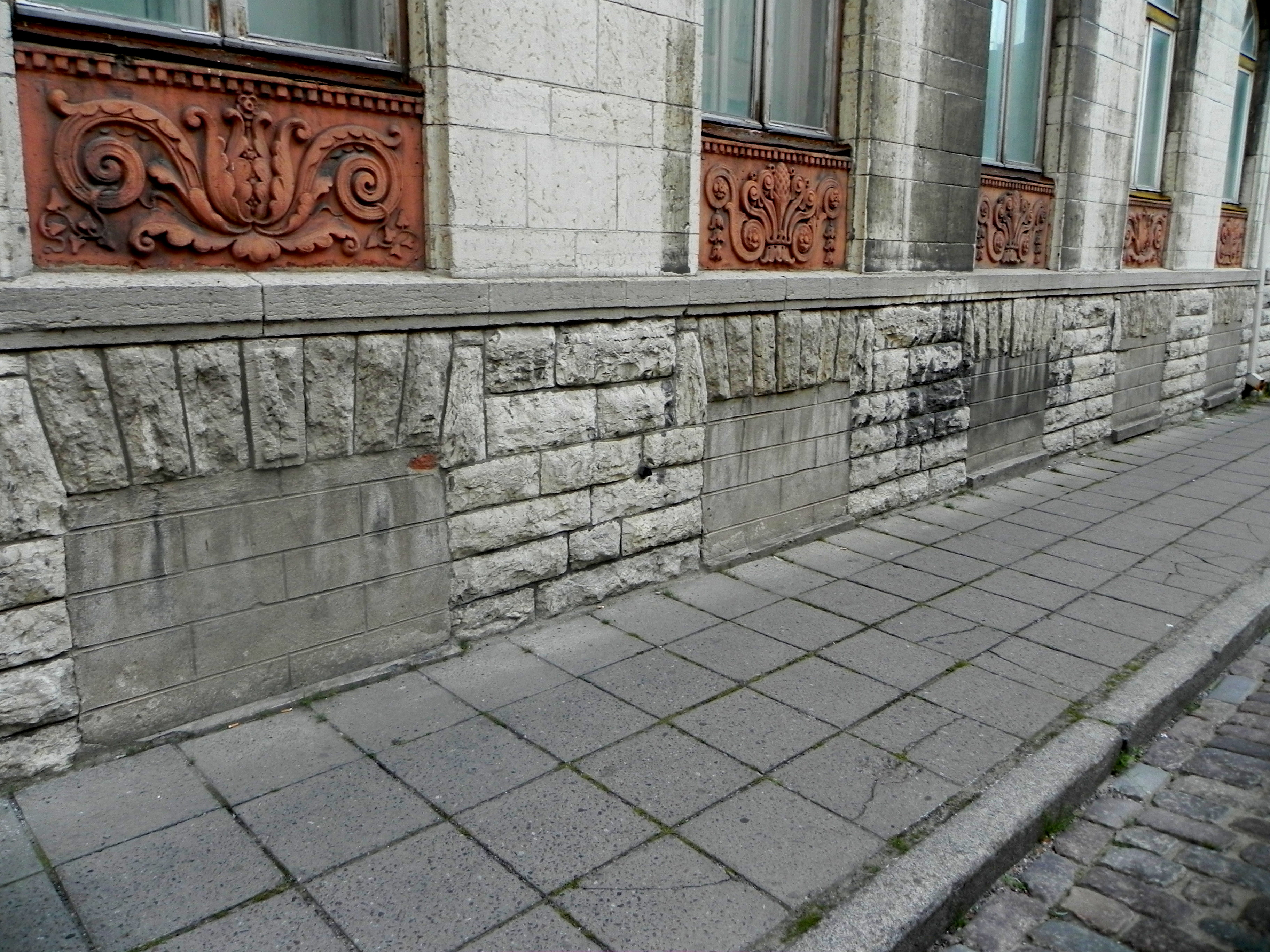 The photo from Tallinn, Estonia tells a much more somber tale; the windows were filled with cement blocks when Soviet victims were tortured in the basement.