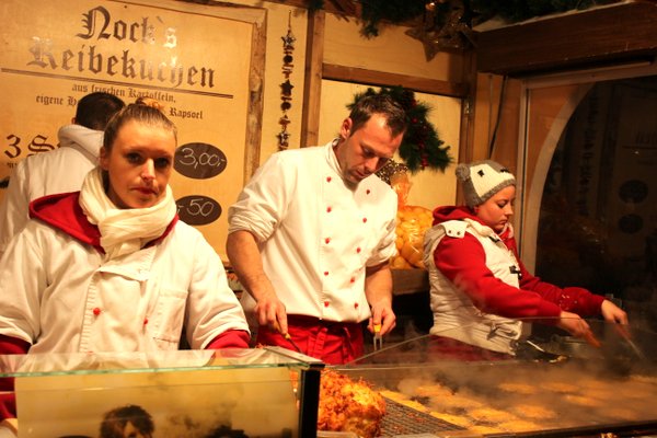 Our final food selection of the evening was also probably the best; Kartoffelpuffer, or fried potato cakes, served with molasses and apple sauce. Having grown up in a largely Jewish town, I screamed out, “LATKES!” and beelined for the stand.