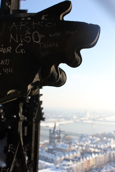 I made this journey to the top of the Kölner Dom with Marina, my Couchsurfing host from Corfu, as well as Julika, a fellow travel blogger/history buff from Sateless Suitcase who is studying to become an art historian. (Might I just add that I will never visit a medieval church sans the company of a well-trained and personable art historian ever again?)
